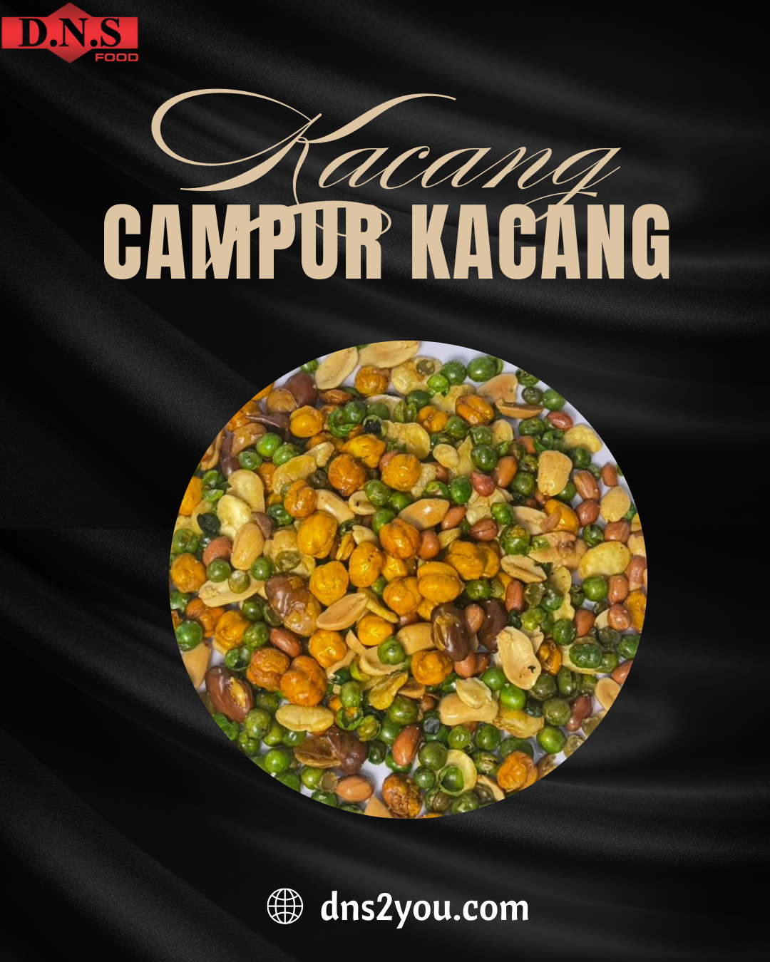 Kacang Campur is a popular crunchy snack made from a mix of assorted nuts and legumes, such as peanuts, chickpeas, green peas, and dhal, fried to crispy perfection. Lightly seasones with aromatic spices, curry leaves, and a hint of salt, it delivers a balanced blend of savoury, spicy, and nutty flavours. This snack is well-loved for its crunchy texture and addictive taste, making it perfect for tea time, festive occasions, or anytime snacking.